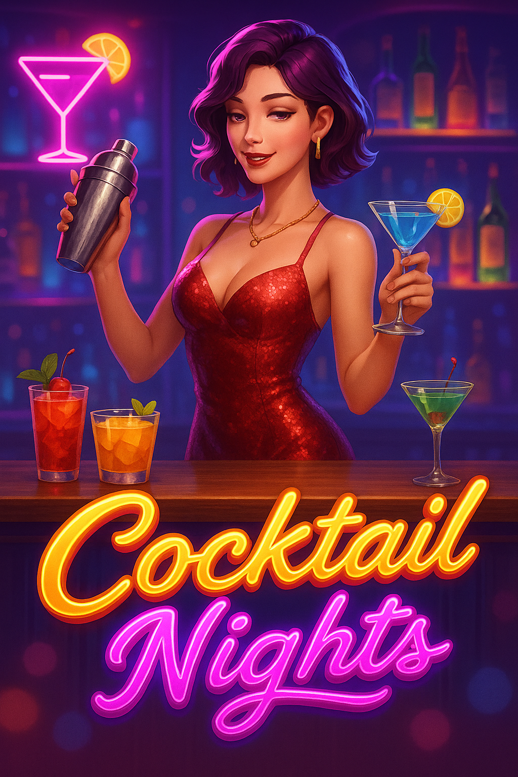 Begitu layar terbuka, pemain langsung disambut oleh karakter utama—seorang bartender cantik dengan aura misterius. Ia seolah mengajak pemain menikmati koktail keberuntungan dalam suasana lounge eksklusif. Simbol-simbol seperti gelas martini, botol premium, dan buah tropis menambah sentuhan realistik dan sensual pada tampilan game.